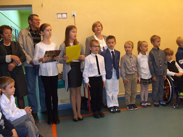 Pani dyrektor Małgorzata Maćkowiak wraz z rycerzem pasowała dzieci z klas I na uczniów po przedstawieniu teatralnym „Żywe lekcje historii” o pasowaniu na rycerza. Następnie odbyło się uroczyste ślubowanie. Po odczytaniu jego treści uczniowie złożyli przysięgę. Uczniowie obiecali uczyć się pilnie, być grzecznymi, szanować dobre imię szkoły oraz być dobrym Polakiem. Po uroczystości uczniowie otrzymali drobne upominki i udali się na słodki poczęstunek przygotowany przez rodziców.