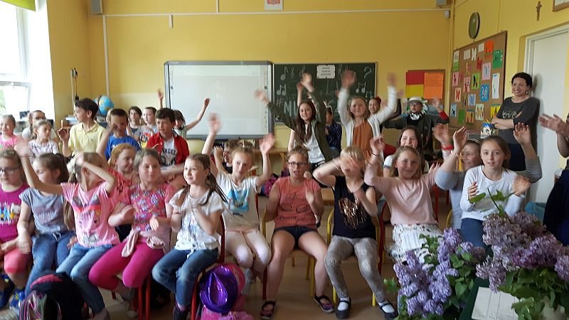 Dzień Dziecka klasy Ic na dziedzińcu Urzędu Miasta