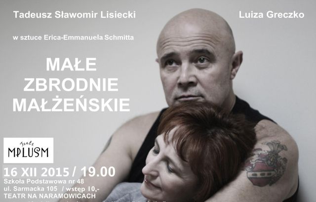 Zapraszamy na sztukę Erica Emmanuela Schmita pt. “MAŁE ZBRODNIE MAŁŻEŃSKIE”, która odbędzie się 16 grudnia 2015r. w Szkole Podstawowej nr 48 przy ul. Sarmackiej 105 w Poznaniu – wstęp 10zł. oraz w tym dniu odbędzie się wernisaż prac pana Stanisława Rakowskiego.