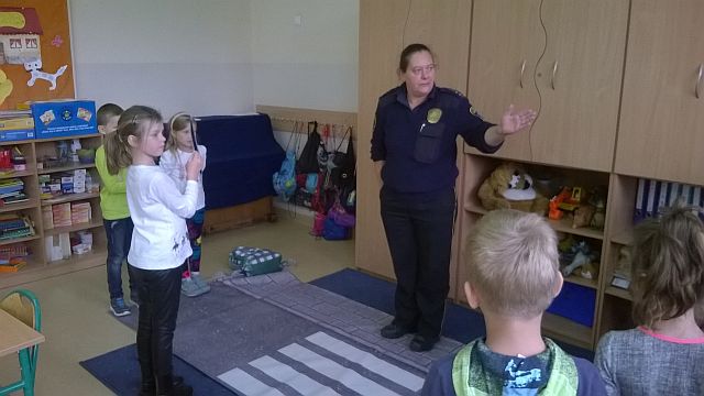 Oj, tyle się dzieje w klasie 1b ! W środę, 05.10. odwiedziła nas pani strażniczka ze Straży Miejskiej. Mówiła o bezpiecznym poruszaniu się po drogach. Później, podczas zabawy na dywanie, sprawdzaliśmy swoją wiedzę w praktyce i uczyliśmy się prawidłowo przechodzić przez jezdnię na rozłożonej planszy.