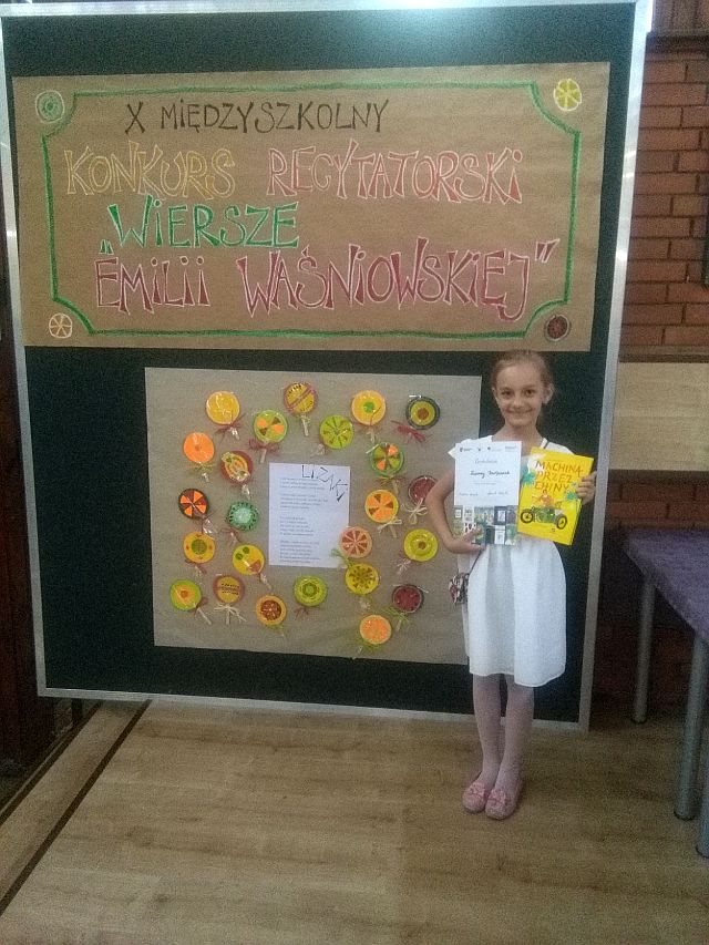 5 czerwca w Szkole Podstawowej nr 34 odbył się X Międzyszkolny Konkurs Recytatorski „Wiersze Emilii Waśniowskiej”.Do konkursu przystąpiło 65 uczniów z 23 szkół podstawowych Poznania i województwa wielkopolskiego. W komisji zasiedli: p. Joanna Marchewka – nauczyciel konsultant ODN, p. Agnieszka Różańska – aktorka Teatru Nowego oraz p. Magdalena Kozłowska – nauczyciel bibliotekarz, polonista.