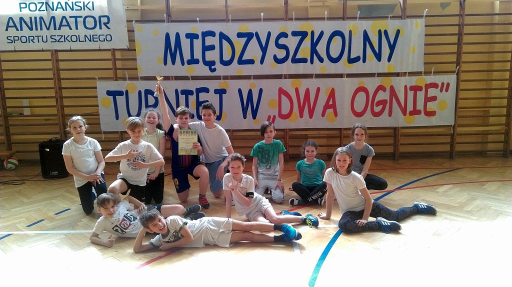 W dniu 01 kwietnia 2019 roku w Szkole Podstawowej nr 11 na os. Wichrowe Wzgórze odbył się międzyszkolny turniej klas czwartych w Dwa ognie. W zawodach wzięło udział sześć drużyn. Zespoły rywalizowały w dwóch grupach, systemem „każdy z każdym”. O tym kto z kim zagra, zadecydowało losowanie, a w roli przysłowiowej„sierotki” wystąpił uczeń naszej szkoły, Marek z klasy IV B.Zawody przebiegły w przyjaznej i sportowej atmosferze, a wszystkie mecze były bardzo emocjonujące. Nasza reprezentacja zajęła IV miejsce, za który otrzymaliśmy puchar, pamiątkowy dyplom oraz słodką niespodziankę.