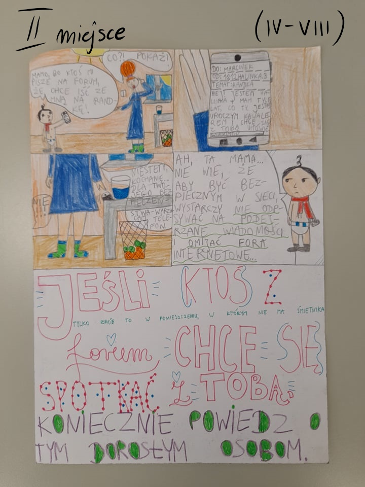 Jesteśmy po obchodach Dnia Bezpiecznego Internetu, który przypadał w tym roku na 8 lutego, jednak u nas w Szkole świętowaliśmy przez cały tydzień. Z okazji minionego wydarzenia uczennice klasy 4 czytały młodszym kolegom i koleżankom baśń “O wilku i siedmiu koźlątkach”, która trafnie nawiązuje do ostrożności, jaką musimy zachować w sieci. Zaprosiliśmy również uczniów klas 0-III do działu w konkursie pt. „Jak wyobrażasz sobie niebezpieczeństwo w sieci?” a uczniów klas IV-VIII do udziału w konkursie „Jestem bezpieczny w sieci”. Młodsi uczniowie dostarczyli piękne prace plastyczne, a klasy starsze stworzyły plakat na swoich urządzeniach. Wykorzystali do tego różne programy do tworzenia grafik, m.in.: Word i Canvę. Jednogłośnie możemy przyznać, że uczniowie uruchomili swoją wyobraźnię i pokazali, jak być bezpiecznym online. Autorzy najciekawszych prac zostali nagrodzeni.