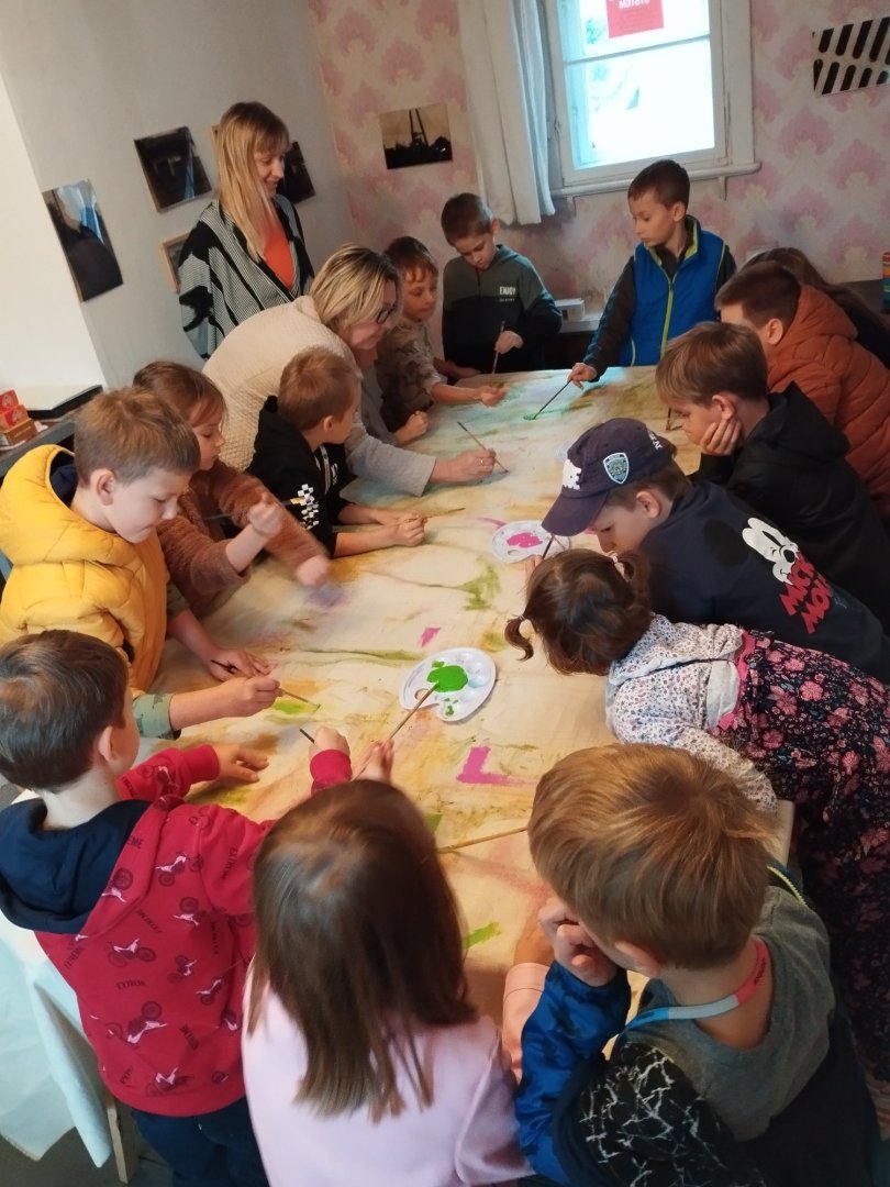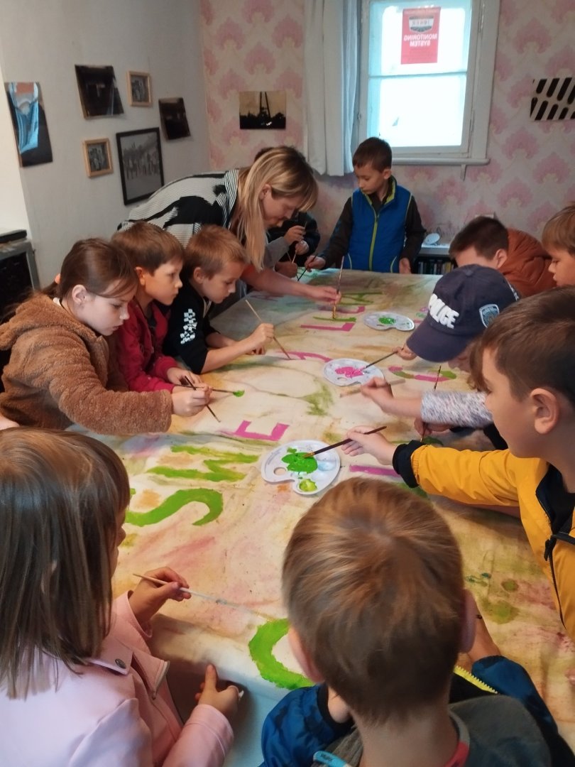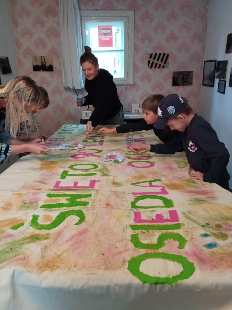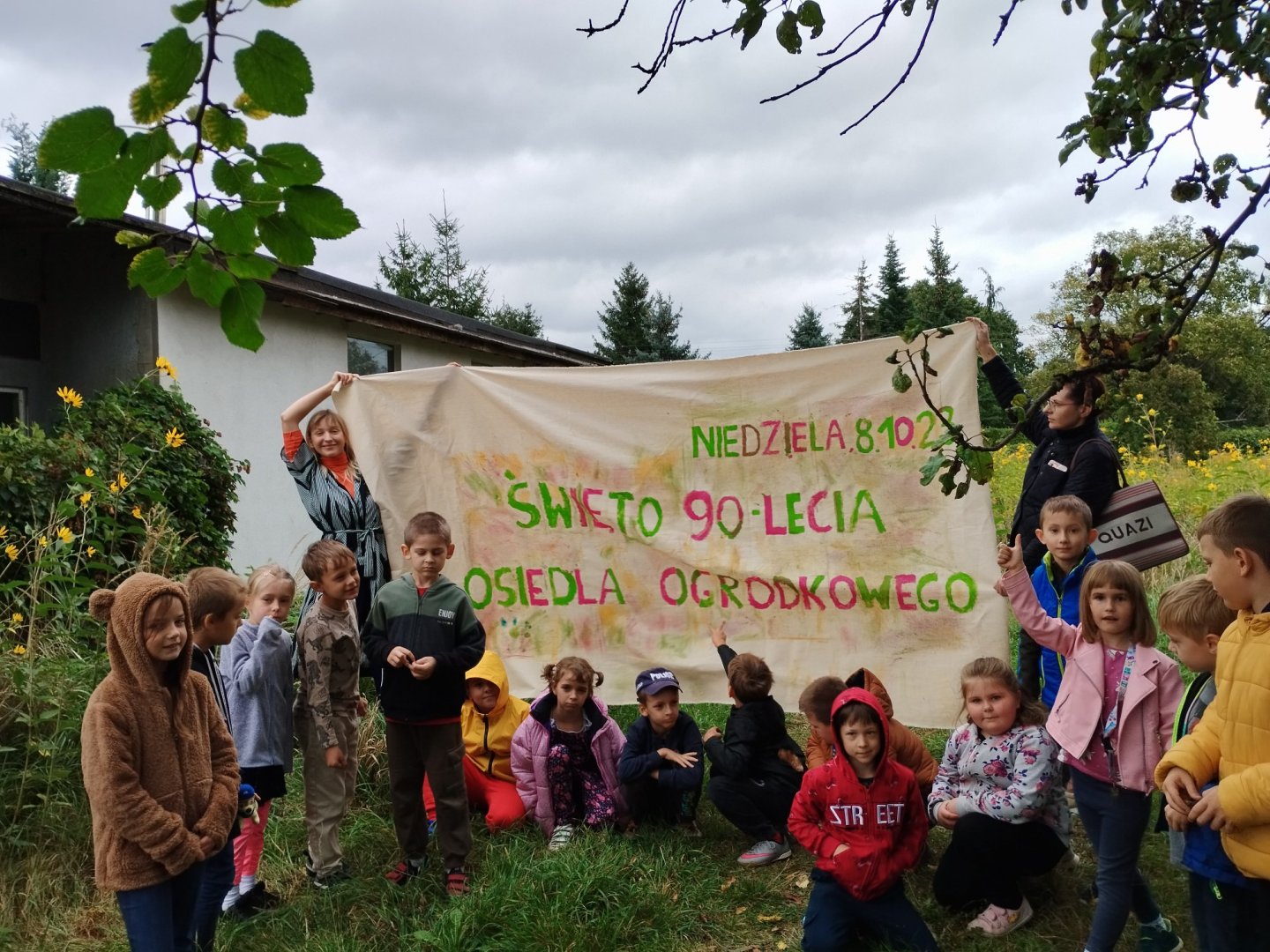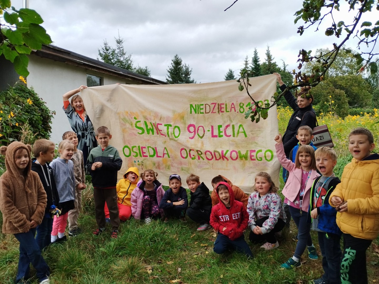 W dniu 04.10.2023 klasa 1b brała udział w warsztatach przygotowanych z okazji 90. rocznicy powstania ogródków działkowych. Dzieci zwiedziły Mikro Dom Kultury, poznały historię powstania tego miejsca. Następnie przygotowały transparent na płótnie dotyczący obchodu tego święta. Do jego farbowania dzieci wykorzystały warzywa zerwane w ogrodzie.