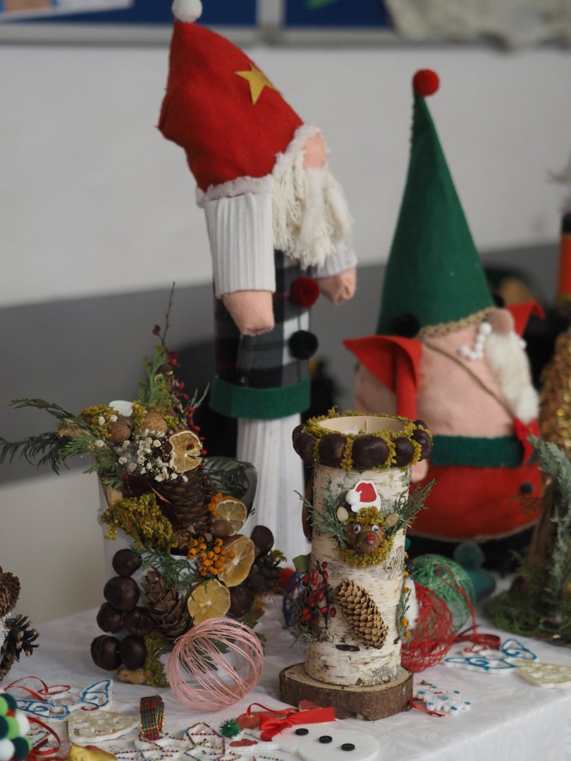 Na kiermaszu można było zaopatrzyć się w świąteczne ozdoby, dekoracje, upominki wykonane przez dzieci, rodziców i nauczycieli. Dodatkowo biblioteka szkolna zorganizowała sprzedaż książek, która cieszyła się dużym zainteresowaniem.