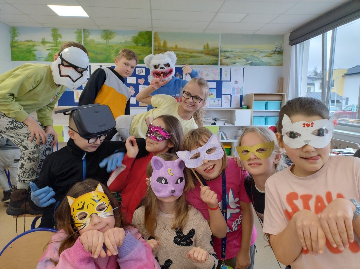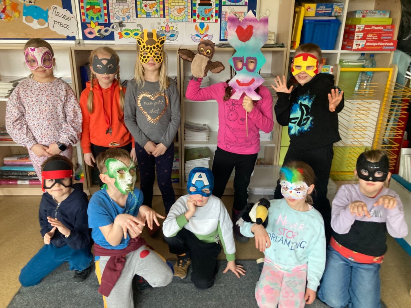 Drogie Dzieci, Chcielibyśmy z całego serca podziękować Wam za wspaniałe uczestnictwo w naszym tygodniu karnawału w szkole! Wasza radość, entuzjazm i zaangażowanie sprawiły, że ten czas był niezwykle magiczny i niezapomniany. Od początku do końca mogliśmy podziwiać Wasze kreatywne: fryzury,makijaże,maski i stroje. Każdego dnia przynieśliście ze sobą mnóstwo uśmiechu i dobrą energię, wpływając na atmosferę całej szkoły.Wasza nieograniczona wyobraźnia i wspaniałe pomysły zdumiewały nas każdego dnia Nie możemy zapomnieć o Waszych rodzicach, którzy nie tylko pomogli Wam w przygotowaniu strojów i rekwizytów, ale również wsparli Was w czasie trwania naszego karnawału. Dziękujemy im za ich aktywne uczestnictwo i zaangażowanie. Dziękujemy, że wzięliście udział w naszym karnawale. Wierzymy, że ten tydzień pozostawił w Waszej pamięci wiele radosnych wspomnień i inspiracji. Życzymy bezpiecznych i niezapomnianych ferii Zespół Organizacyjny Tygodnia Karnawału: Panie: Agnieszka i Patrycja.