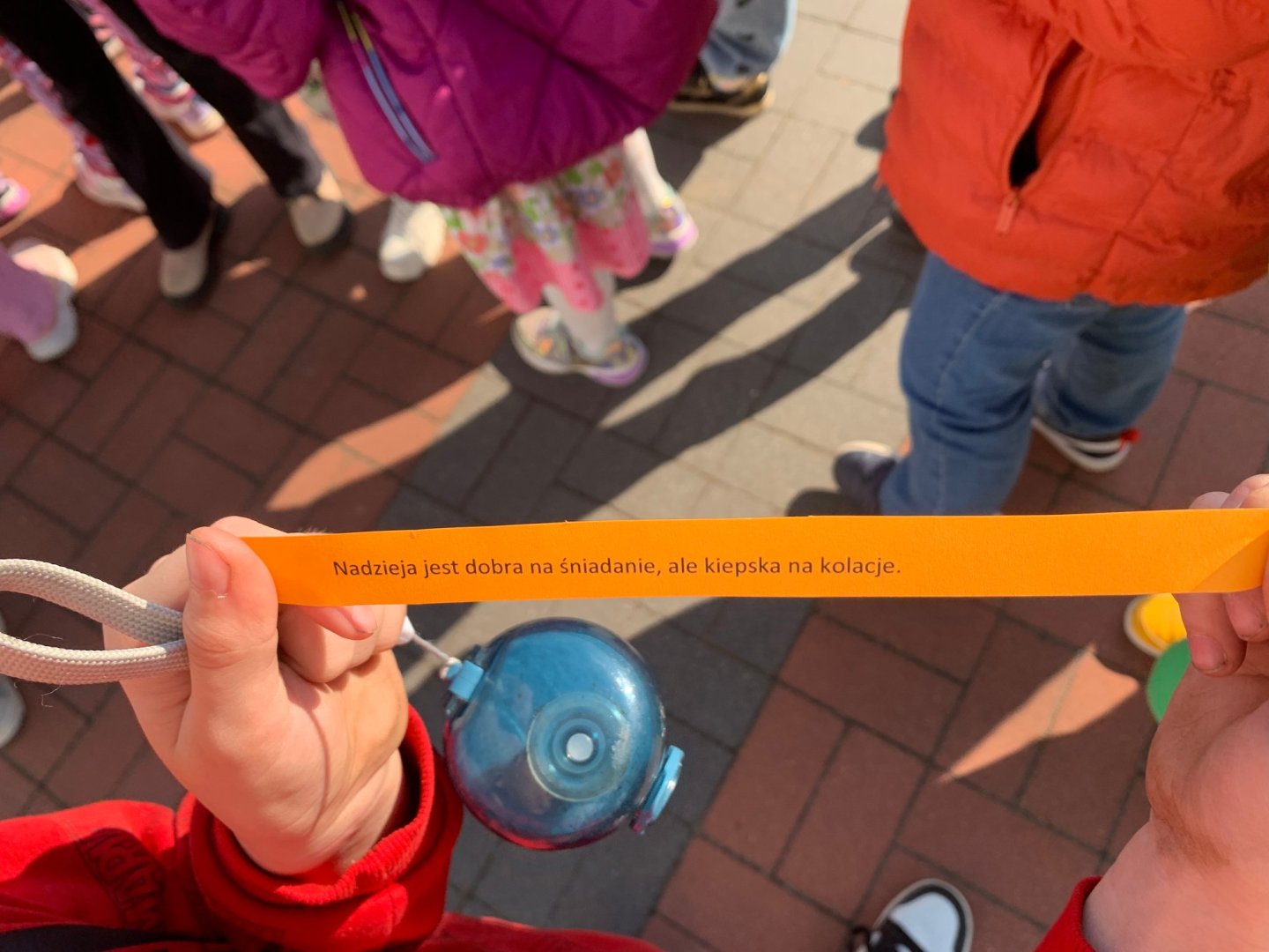 Z okazji Pierwszego Dnia Wiosny nasza szkoła zaangażowała się w akcję uśmiech dla każdego 🙂 Uczniowie z klas 1-3 wybrali się na wiosenny spacer i wręczali napotkanym przechodniom karteczki z optymistycznymi myślami.