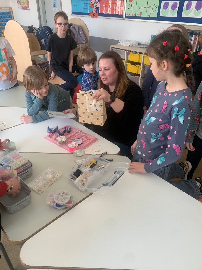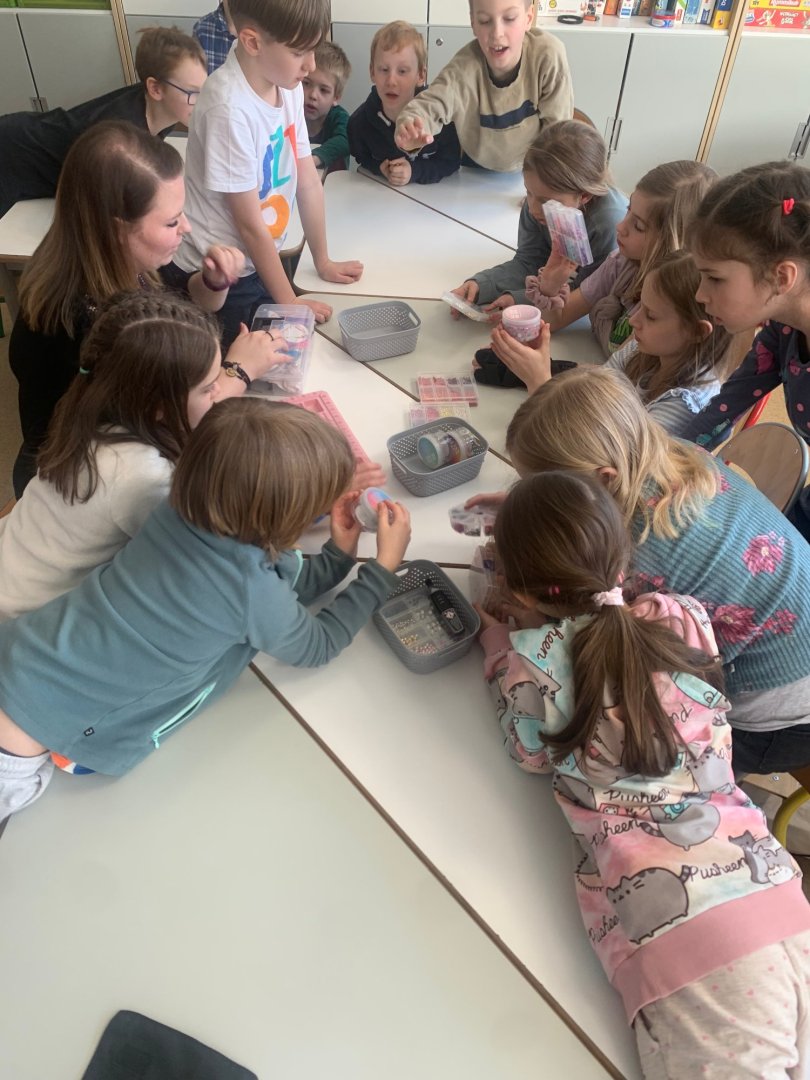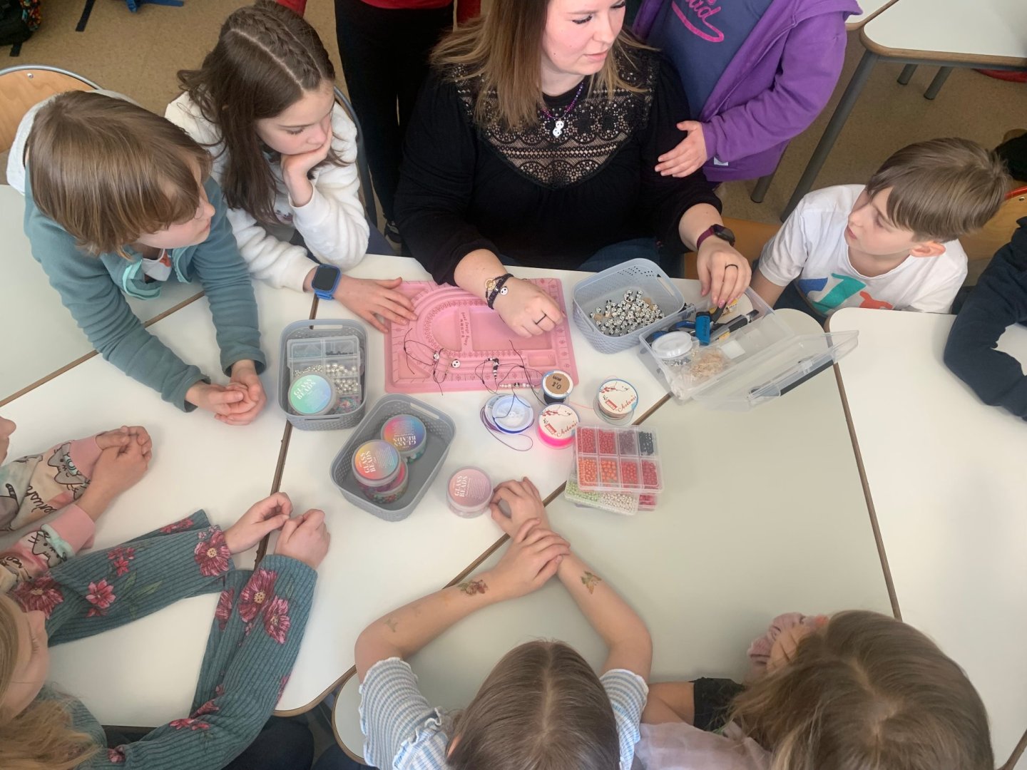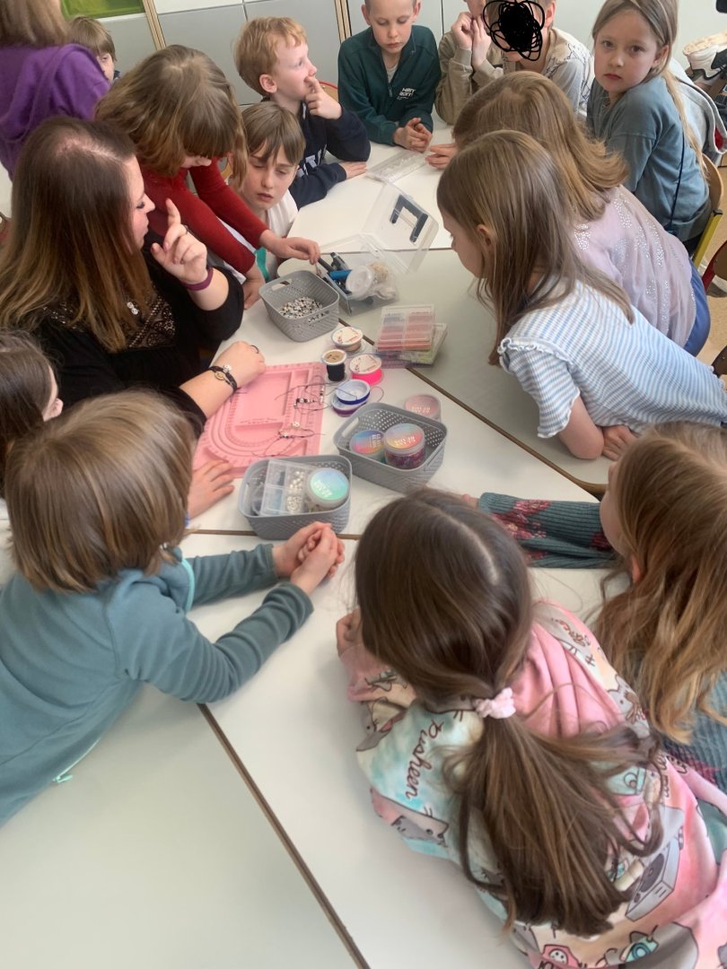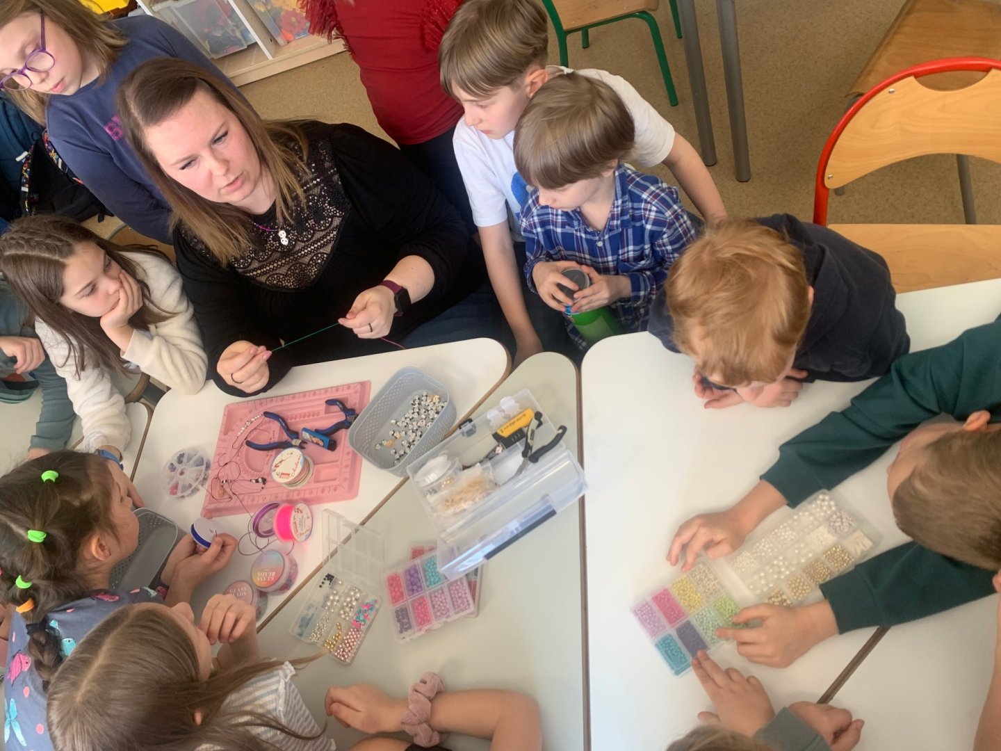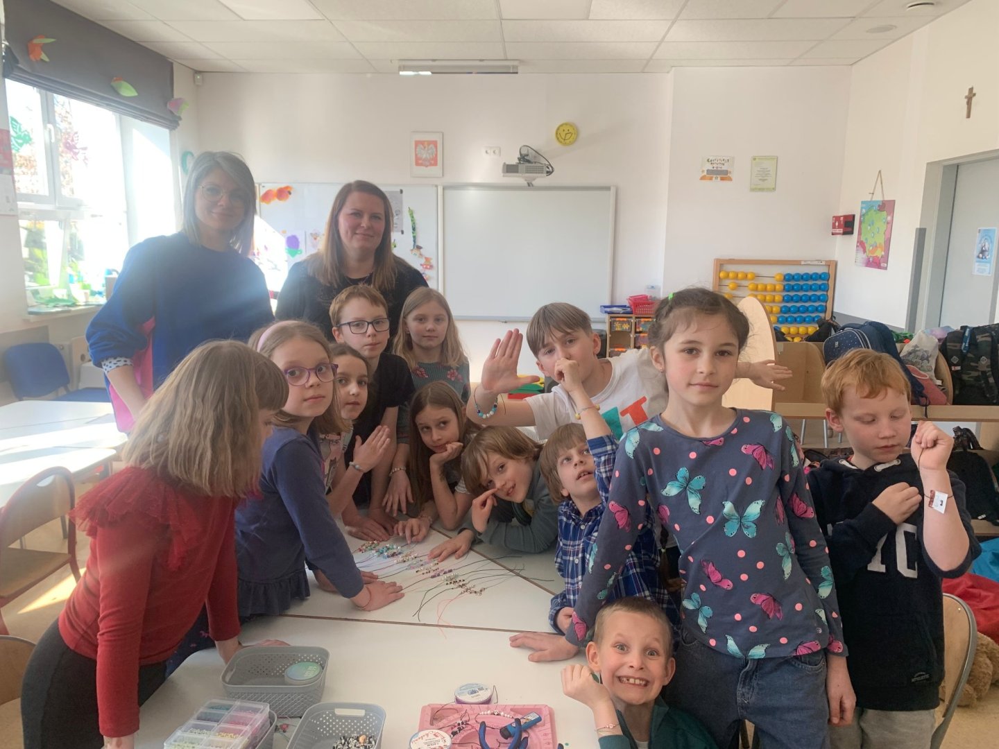 W ostatnim czasie w naszej szkole gościliśmy mamę jednej z uczennic, która przeprowadziła w świetlicy warsztaty tworzenia kolorowych bransoletek. Dzieci z zaangażowaniem wykonywały ozdoby, a gotowe prace zostały przekazane na rzecz Fundacji Panda Team im. Michałka Tarachowicza, wspierając jej szlachetne działania. Serdecznie dziękujemy za poświęcony czas.