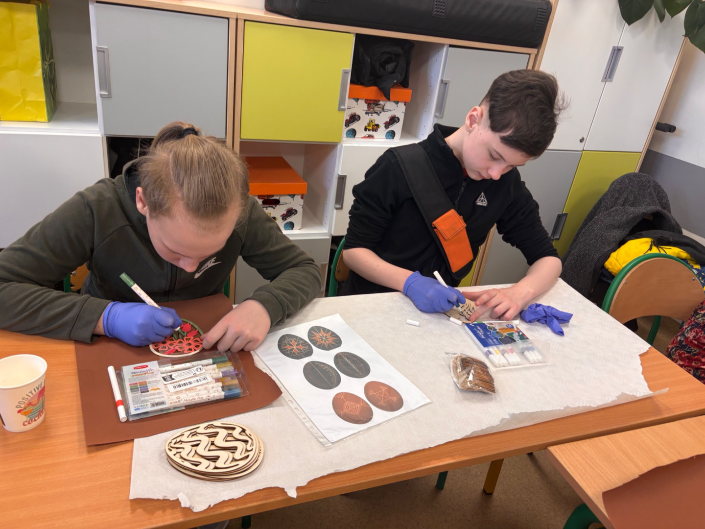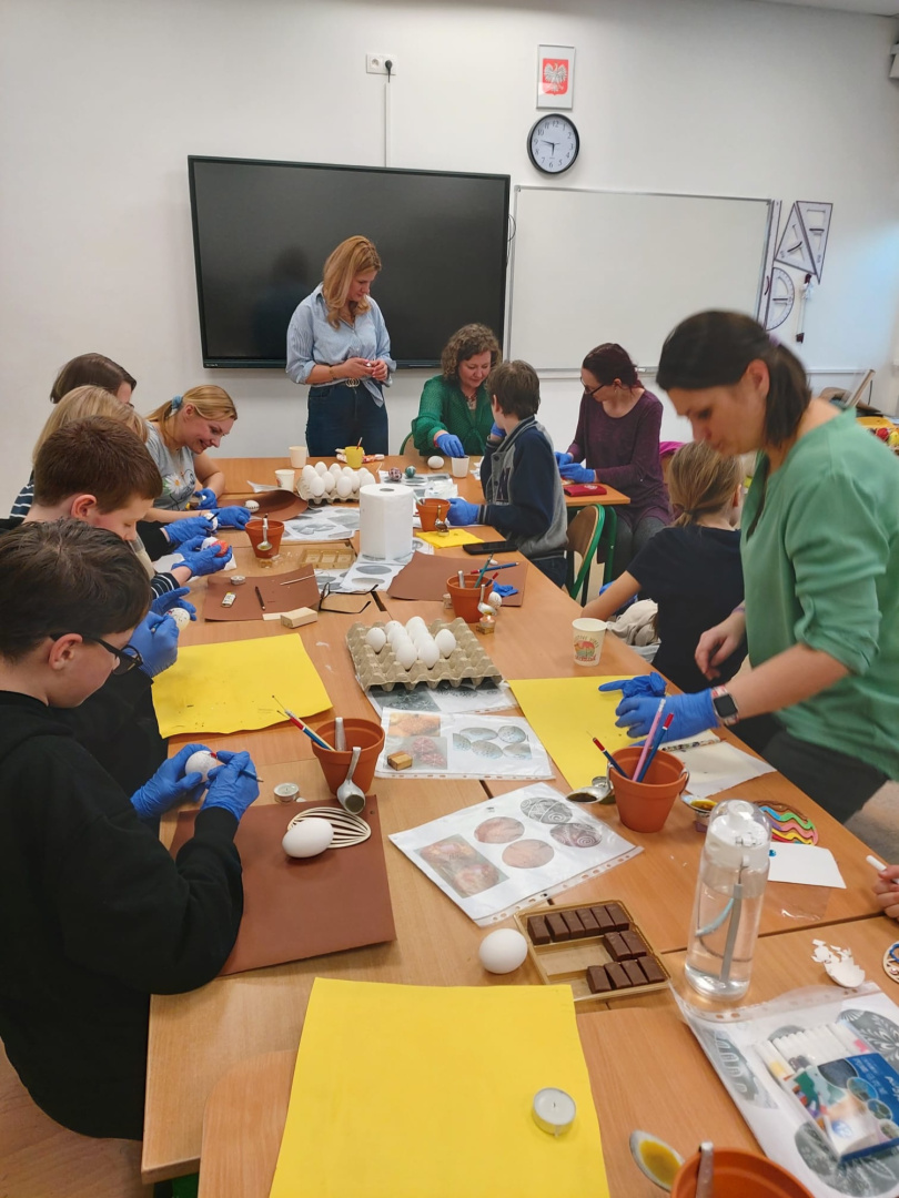 W naszej szkole odbyły się wyjątkowe warsztaty wielkanocne, w których udział wzięli uczniowie klasy 6b wraz z rodzicami. Wspólnie przygotowywali pisanki metodą batikową, które trafią na szkolny kiermasz wielkanocny.